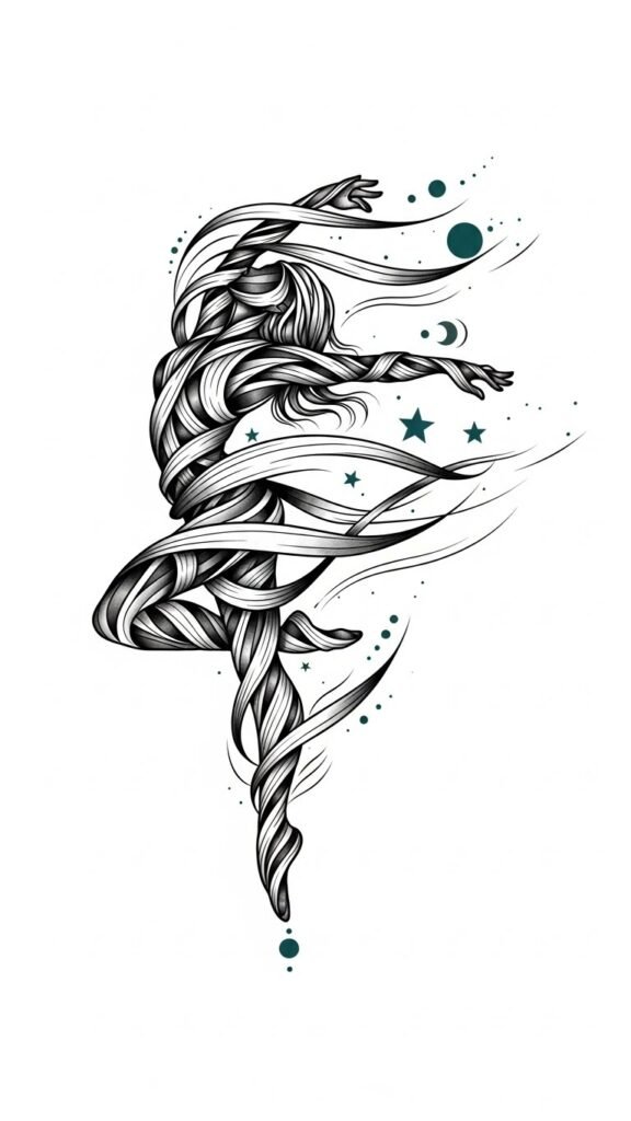 This design embodies fluid motion symbolism, illustrating the grace of your spirit. With dynamic choreography inspiration, your tattoo becomes a celebration of freedom, reminding you to express yourself boldly.