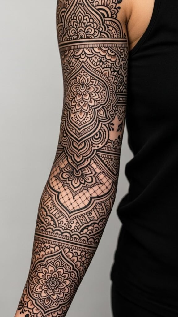 Cultural Artistry: Mehndi-Inspired Sleeve Tattoos