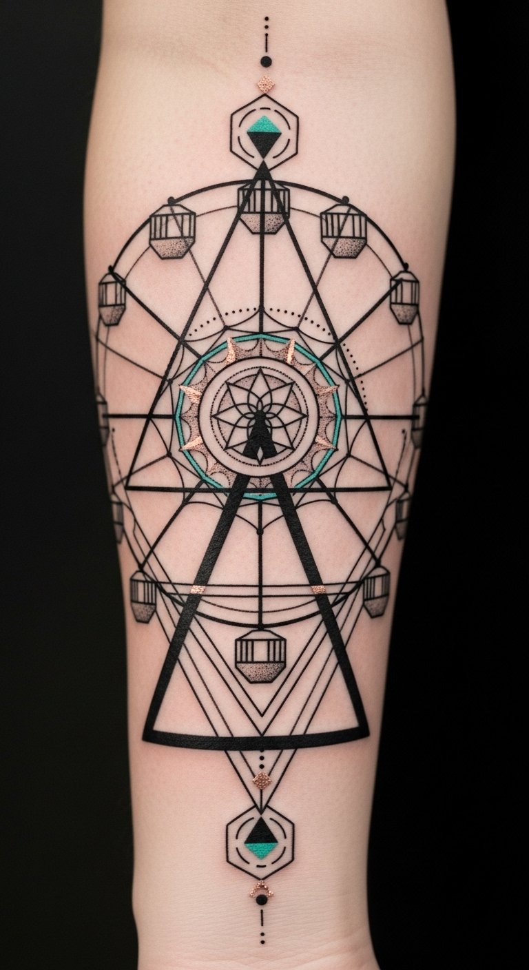 While exploring the world of tattoo art, geometric Ferris wheel designs stand out for their modern allure and intricate beauty.