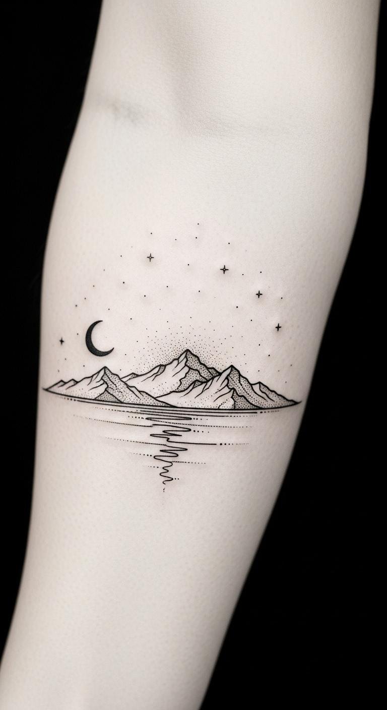 Building on the intricate beauty found in detailed mandala patterns, simplistic landscape scenes offer a serene alternative for tattoo enthusiasts seeking connection with nature.