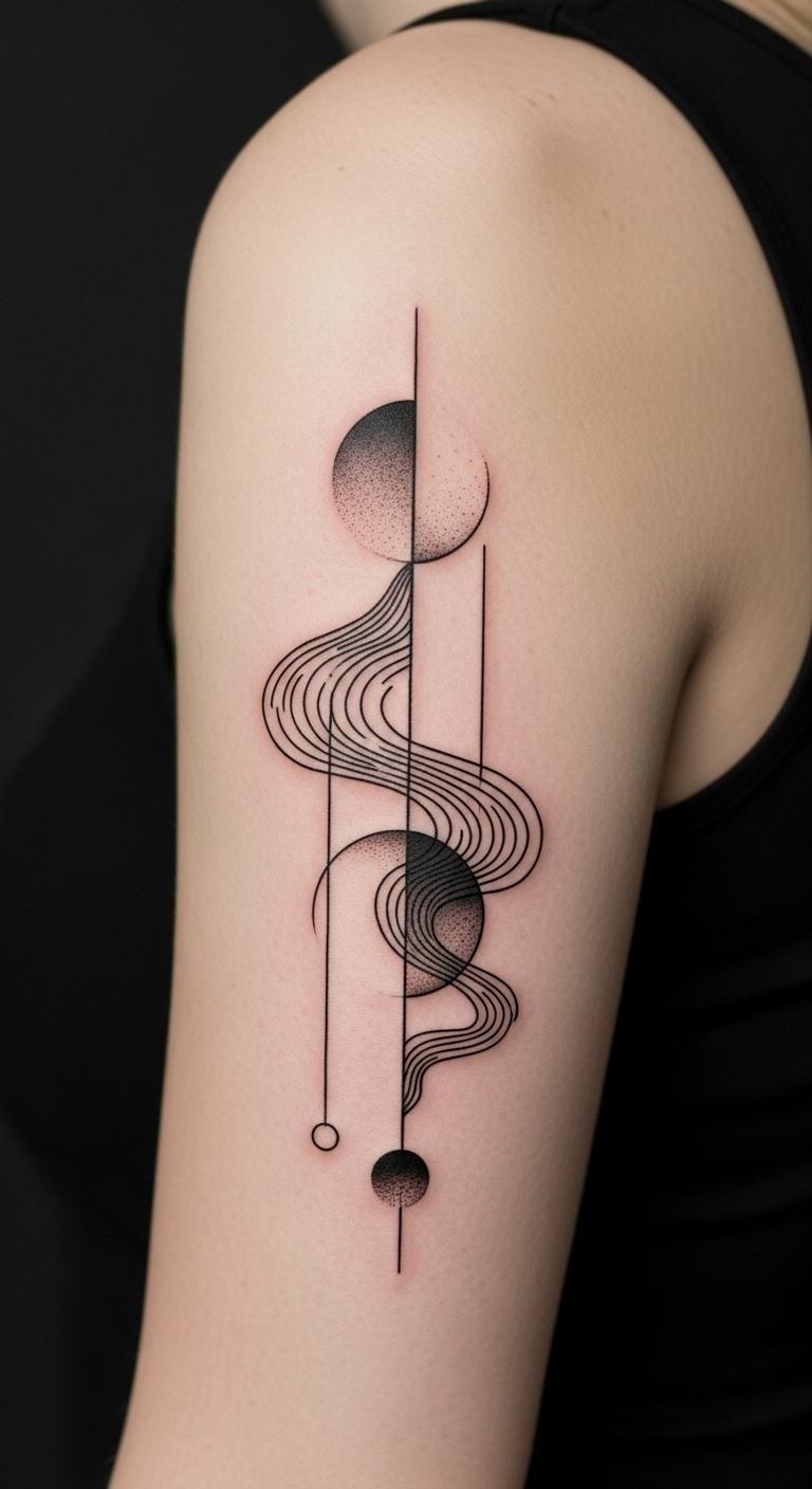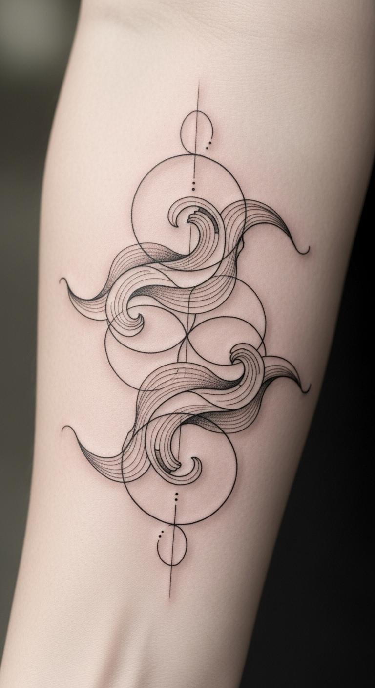 This placement on the wrist or forearm keeps the design visible and intimate, evoking calm and continuity; the circles suggest unity and cycles, while the waves convey movement and emotional resilience.