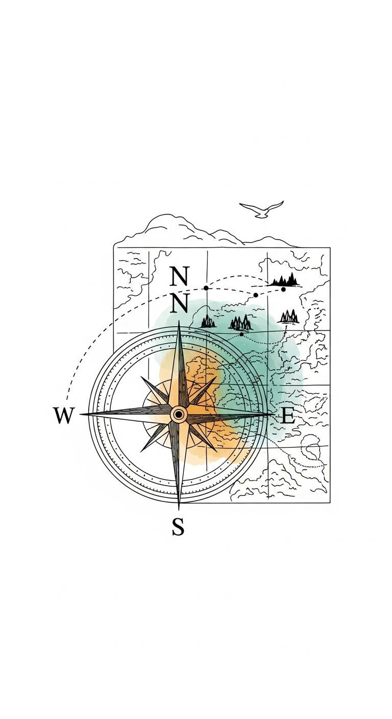These fine line tattoos embody your quest for freedom, inspiring you to explore the world while celebrating the spirit of adventure etched on your skin. The design’s compass symbolizes guidance and inner direction, the dotted path and map points mark personal milestones, the watercolor hues evoke memory and emotion;