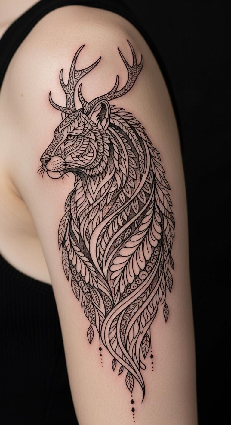 This design conveys deep symbolism—personal identity, spiritual guidance, and reverence for nature—evoking emotions of empowerment, freedom, and connection; ideal placement follows natural contours (forearm, ribs, shoulder blade) to enhance the sense of motion and intimate expression.