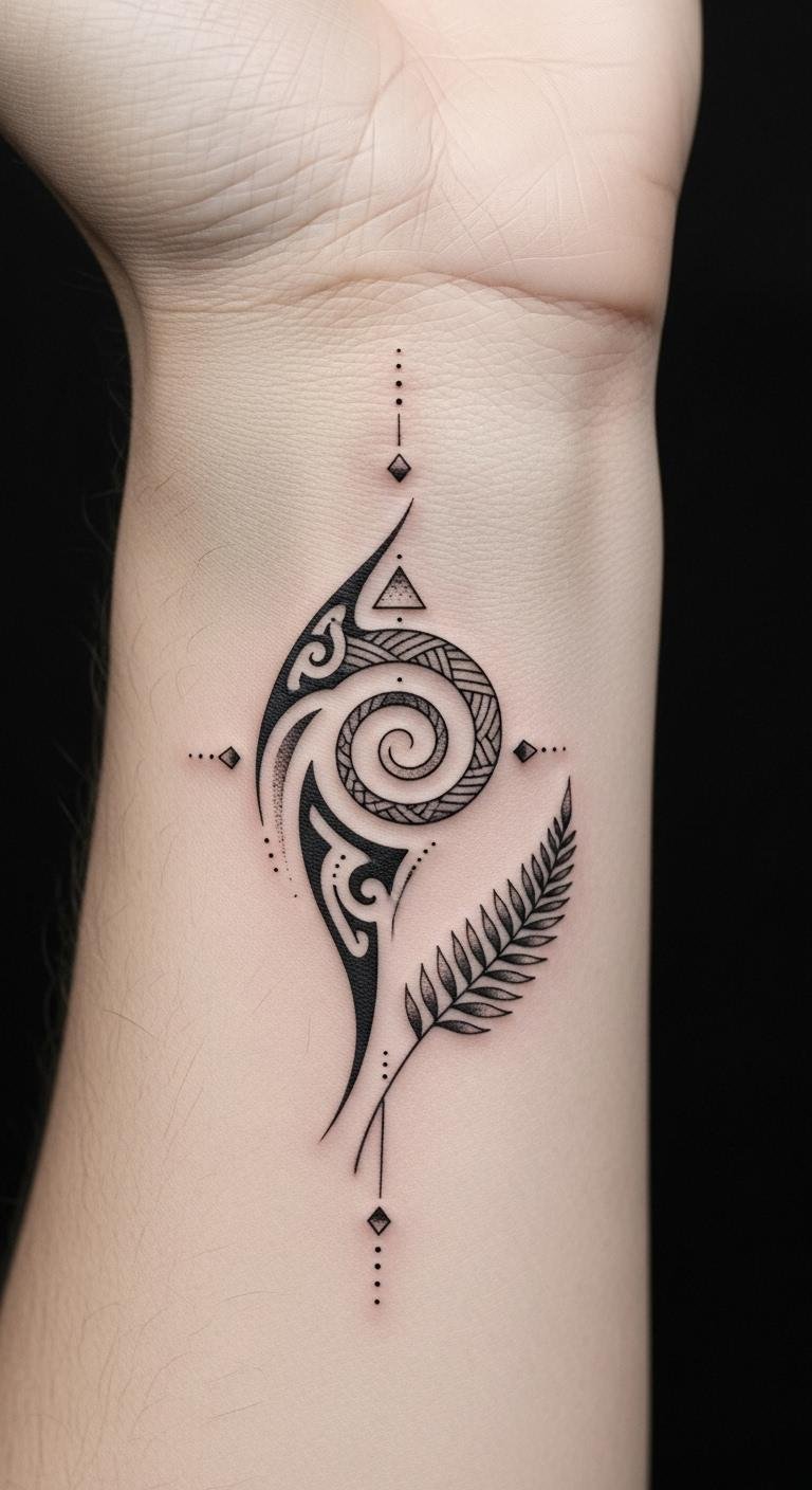 The design balances ancestral motifs and modern minimalism to evoke pride and quiet resilience; placed on the inner wrist it offers a personal talisman visible in intimate moments, or along the ribcage it becomes a private declaration close to the heart.