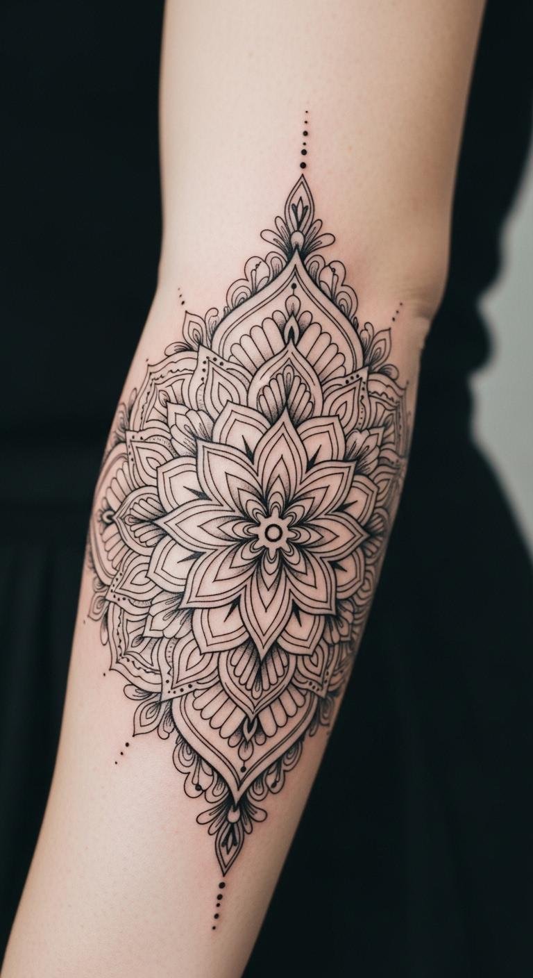 Placement along the forearm (or collarbone for a more intimate option) allows the pattern to move with the body, visible when you want to share that inner spirit and easy to conceal when private.