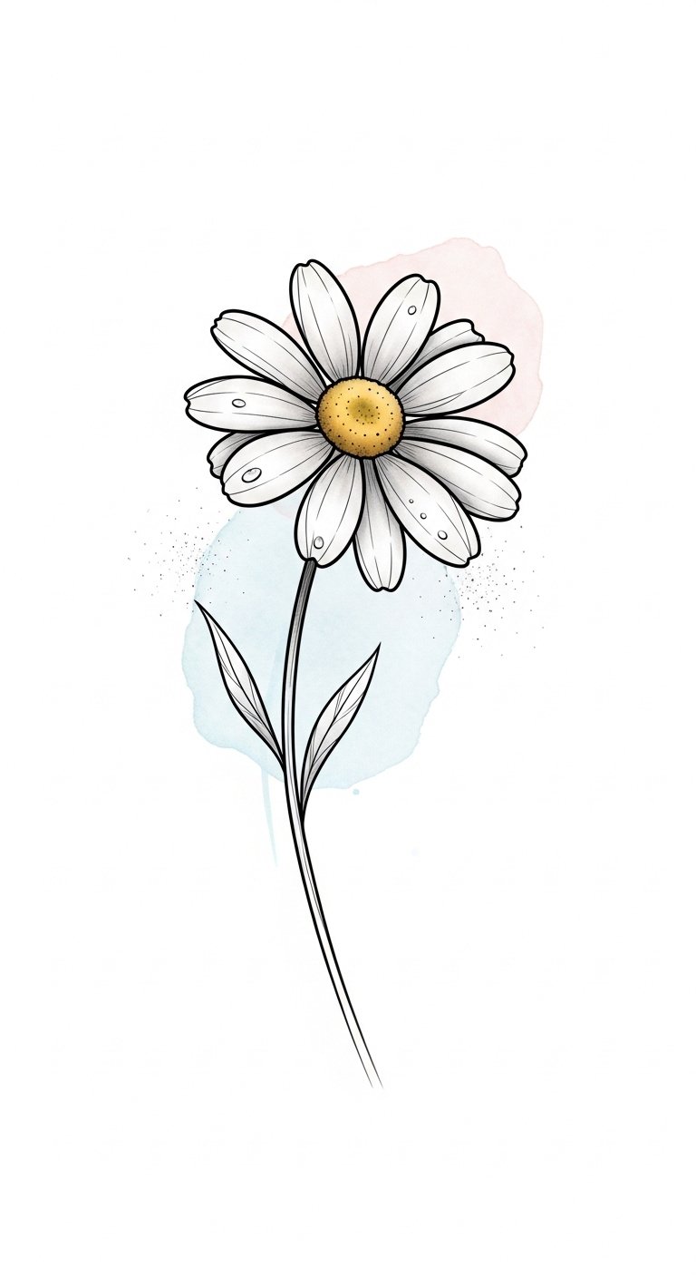 A daisy tattoo captures this essence, inspiring daily reflections of innocence and heartfelt authenticity. This design emphasizes gentle emotion and understated elegance—perfect for intimate placements like the inner wrist, behind the ear, or near the collarbone where it can be a quiet, personal reminder; the soft watercolor wash adds nostalgic warmth while the fine linework preserves simplicity and lifelong readability.