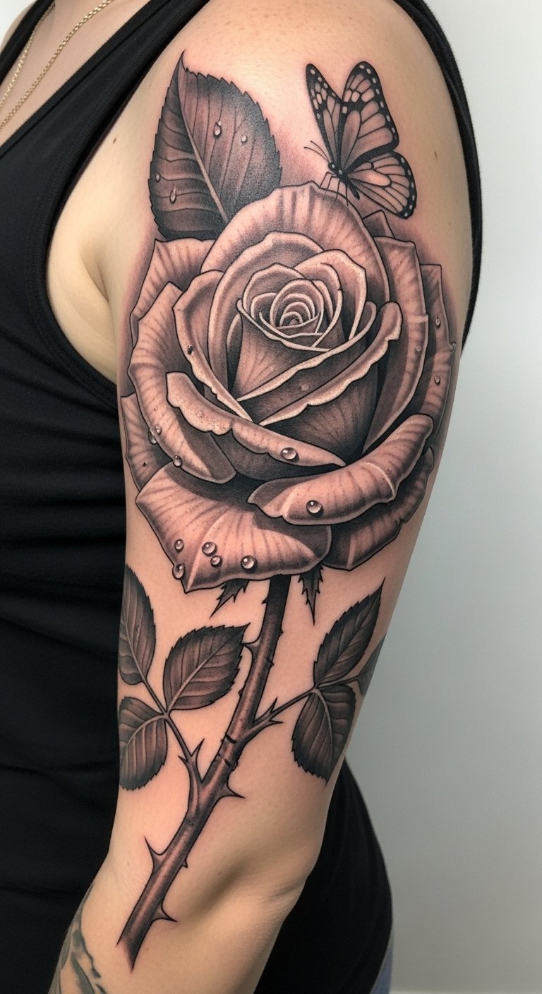 Emotionally it evokes confidence, warmth, and personal storytelling; ideal placements include the forearm or shoulder blade for visibility and flow, or the ribcage and thigh where larger compositions can unfold organically.