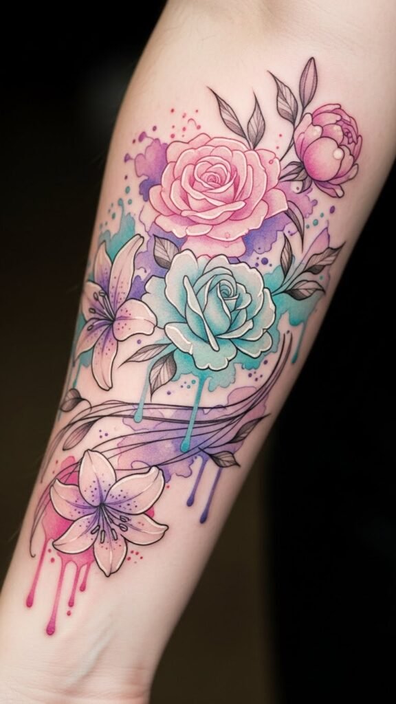 When you think of watercolor flowers, vivid images of soft hues blending seamlessly come to mind, creating an enchanting dreamscape on your skin.