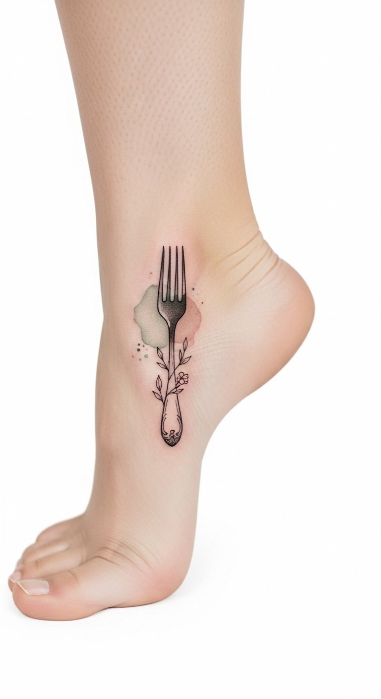 A discreet ankle fork tattoo can be a charming way to express your love for culinary arts without making a bold statement.