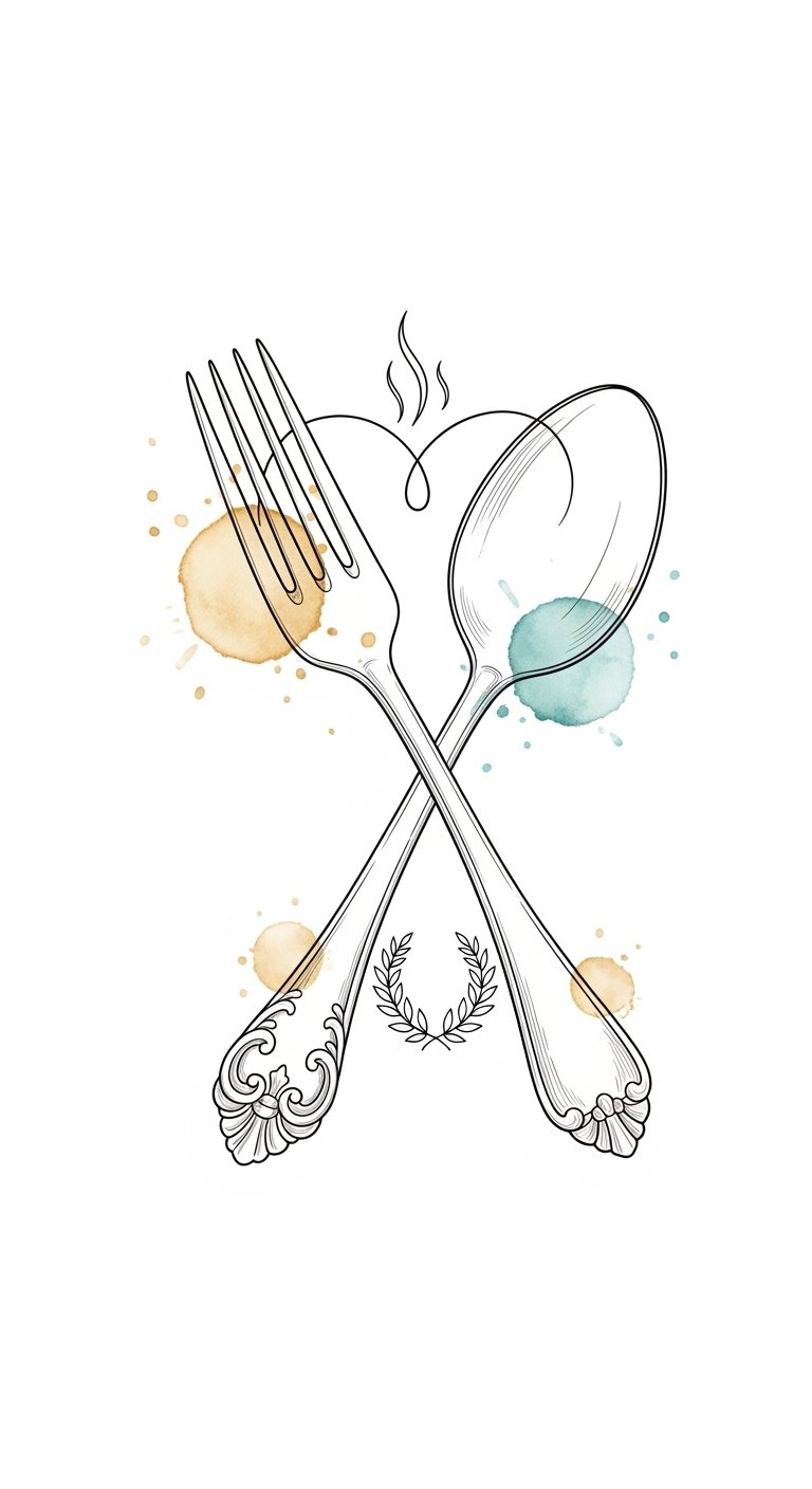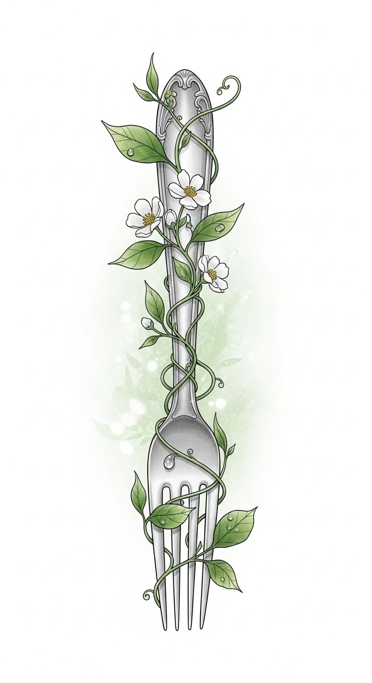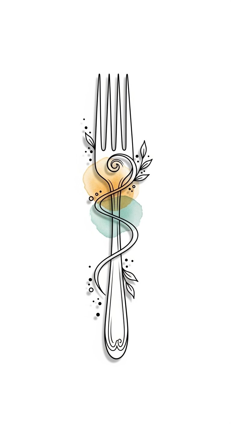 This fork placement symbolizes your love for food and the connections it fosters. With its heartfelt symbolism, this design captures your journey, celebrating transformation and freedom through flavors, memories, and the bonds created around shared meals.