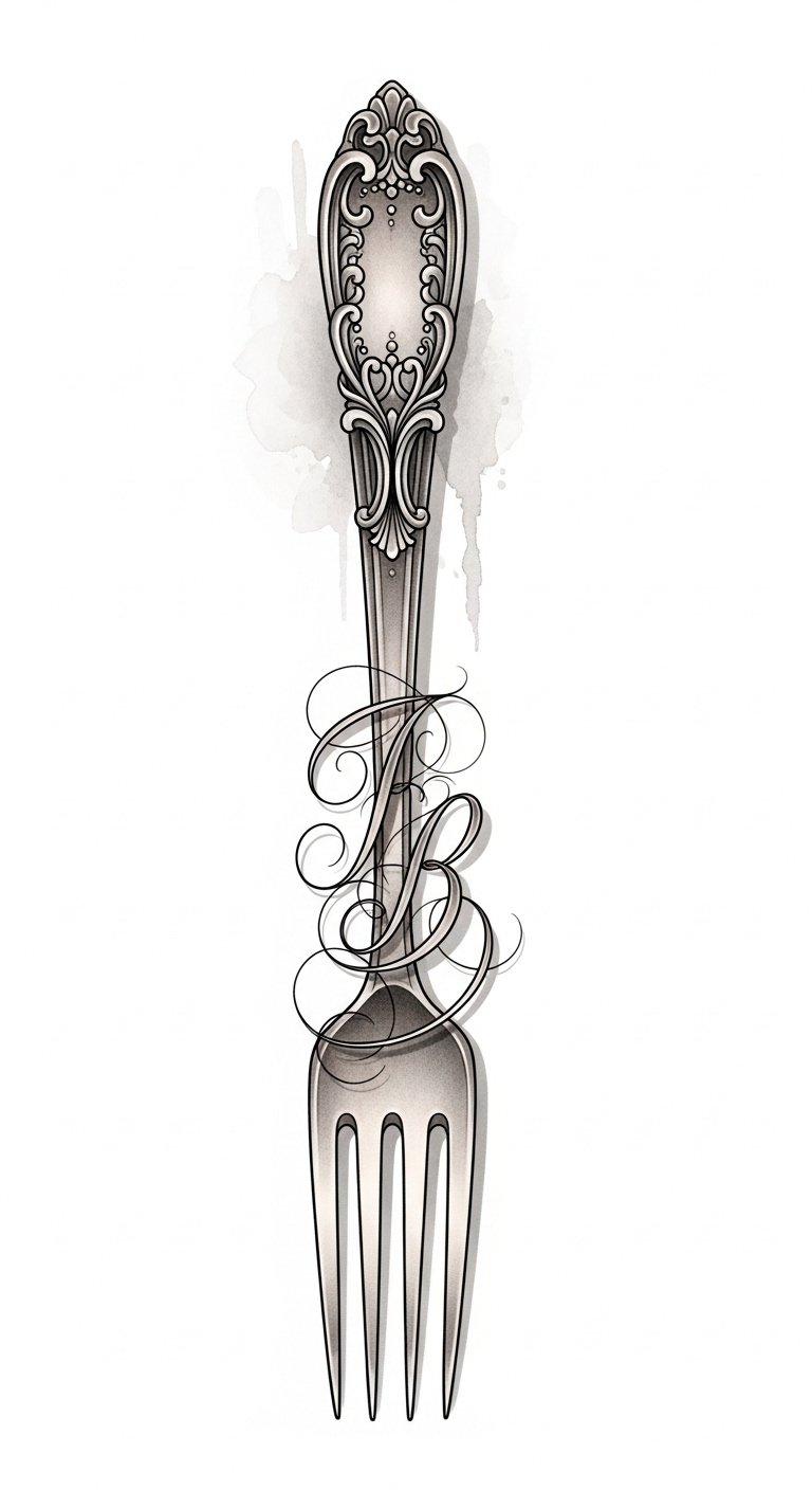 A fork tattoo can become even more meaningful with the addition of personalized initials, turning a simple design into a unique expression of your identity.