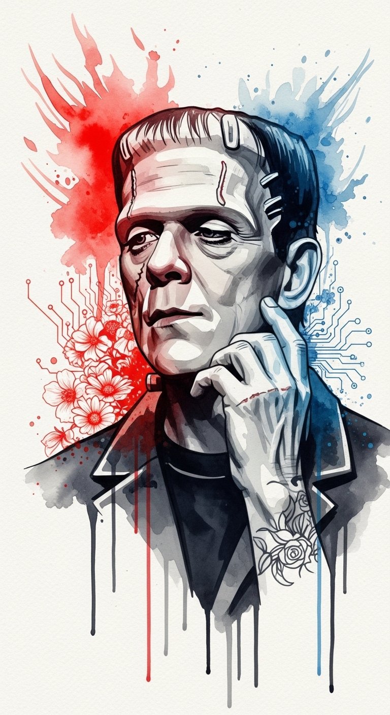 Emotional depth flows through watercolor Frankenstein tattoos, transforming the iconic creature into a vibrant canvas of feeling and expression. Each splash of color symbolizes different emotions, from fiery reds representing passion to cool blues evoking sadness.