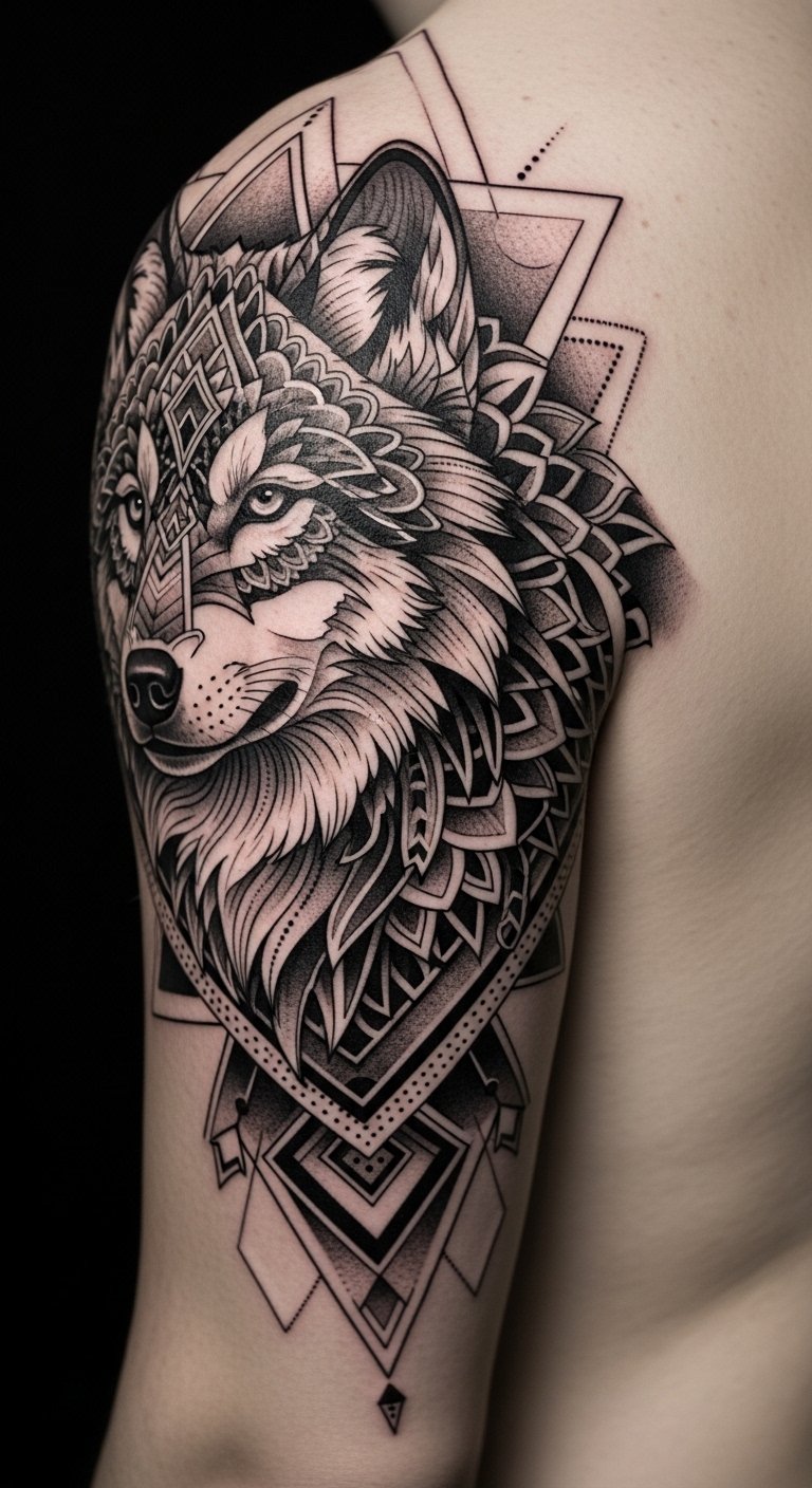 Majestic Geometric Wolf Tattoos