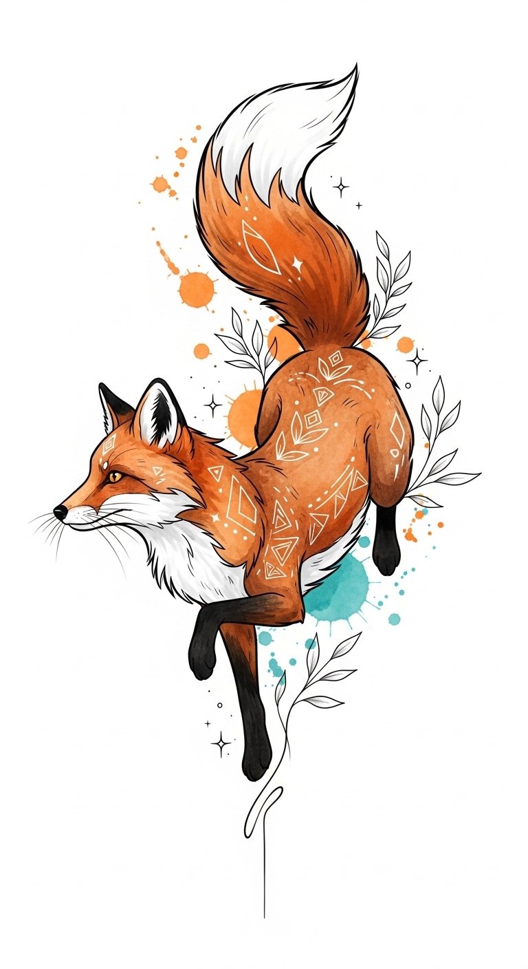 This tattoo embodies freedom and cleverness, drawing on whimsical fox symbolism.