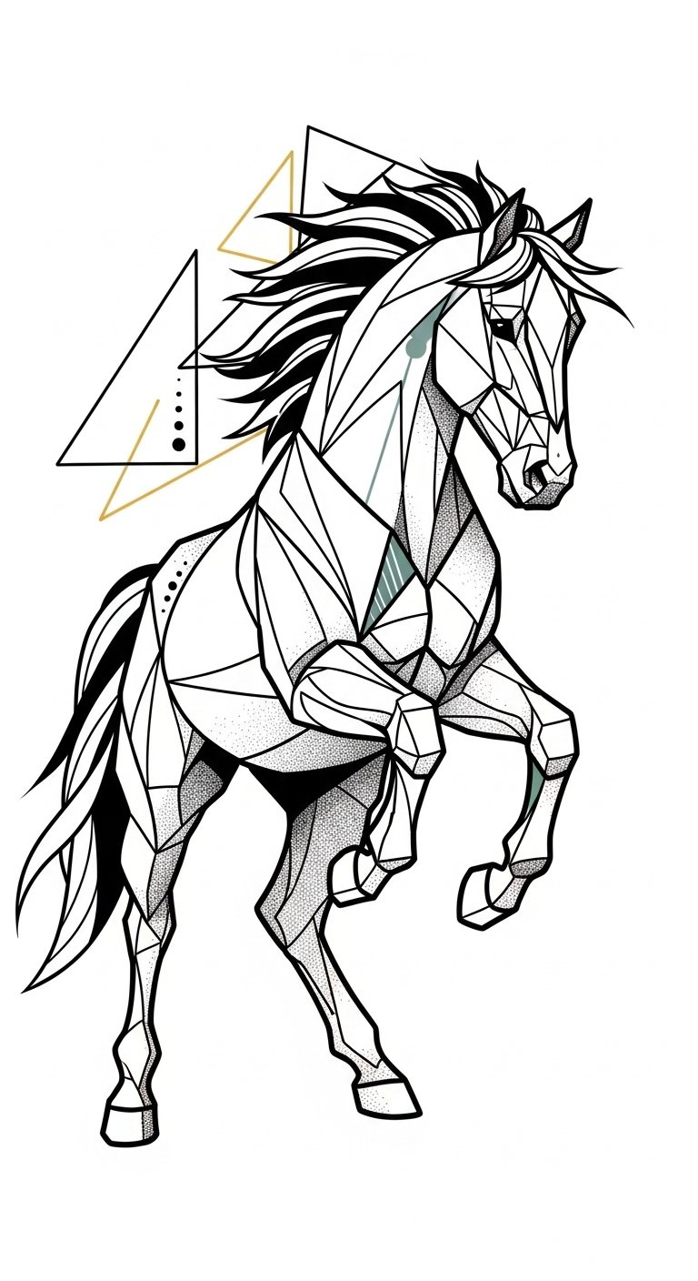 The graceful geometric horse gallops into the domain of tattoo artistry, capturing the essence of strength and elegance in a stunning design. With intricate geometric patterns, this tattoo embodies horse symbolism, representing freedom and untamed spirit.