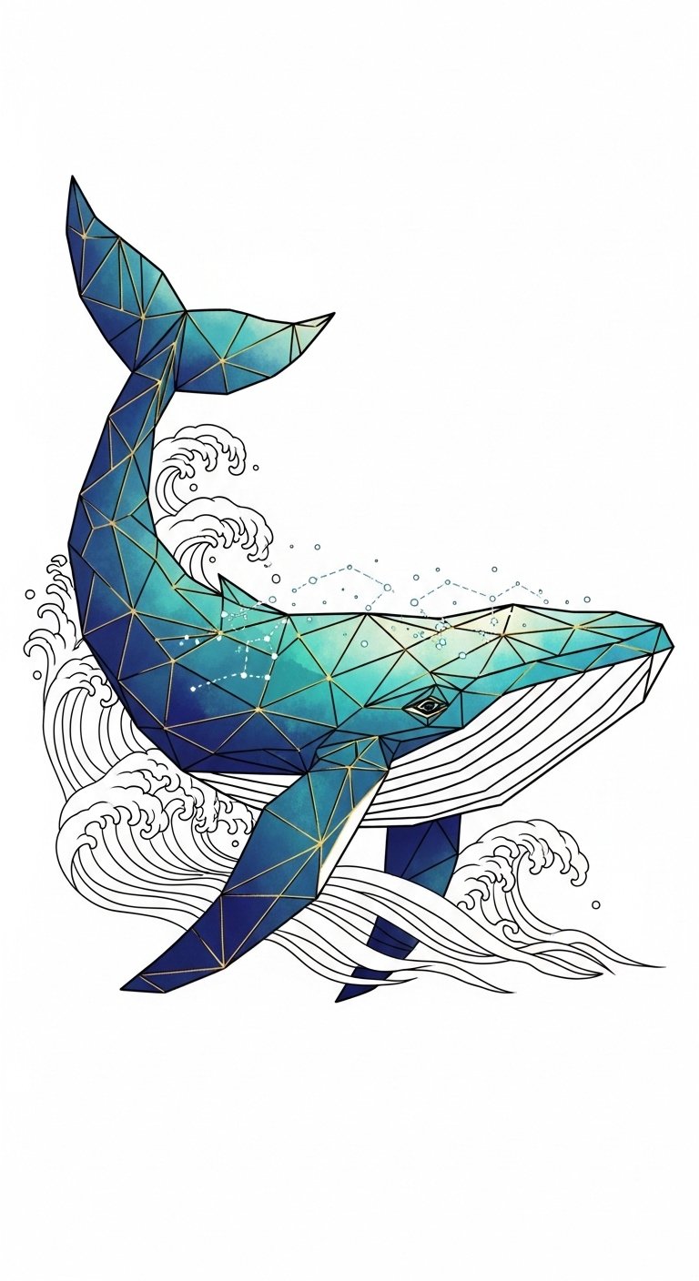 Building on the enchanting world of geometric designs, the unique geometric whale captures the majestic essence of the ocean’s gentle giant.