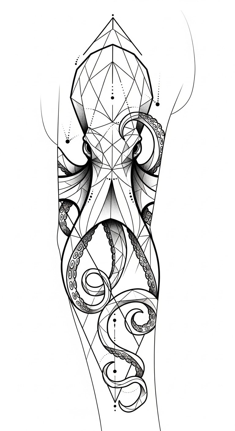Embrace the geometric octopus symbolism, and let it inspire your journey into the depths of self-discovery.