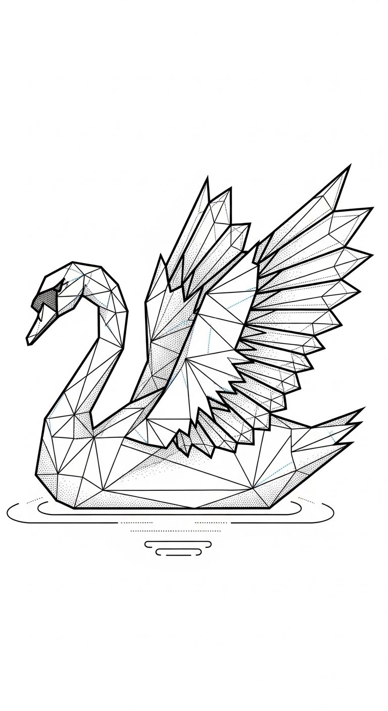 A graceful geometric swan embodies elegance and serenity, merging the beauty of nature with the precision of modern design.