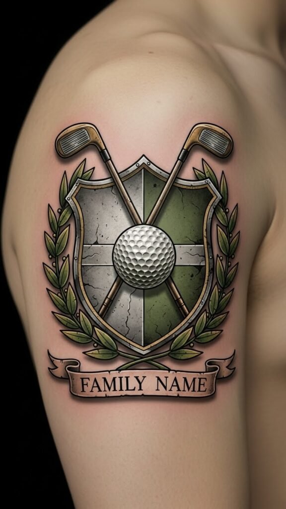 If you’re a passionate golfer, you know how deeply the sport resonates with your identity. Imagine wearing that connection on your skin with a tattoo that captures your love for the game. From intricate designs to minimalist styles, each tattoo tells a story of dedication and artistry. What if you could find a unique piece that truly reflects your golfing journey? Let’s explore some stunning designs that might just inspire your next ink. This design symbolizes lifelong devotion to golf—the vintage club and ball speak to skill and tradition, the ribbon-map ties personal memories of favorite courses, and the daisy accents add warmth and nostalgia; emotionally it conveys pride, calm focus, and a quiet celebration of achievement. Ideal placement is the inner forearm for visibility and personal meaning, sized to allow fine detail while remaining suitable for touch-ups over time.