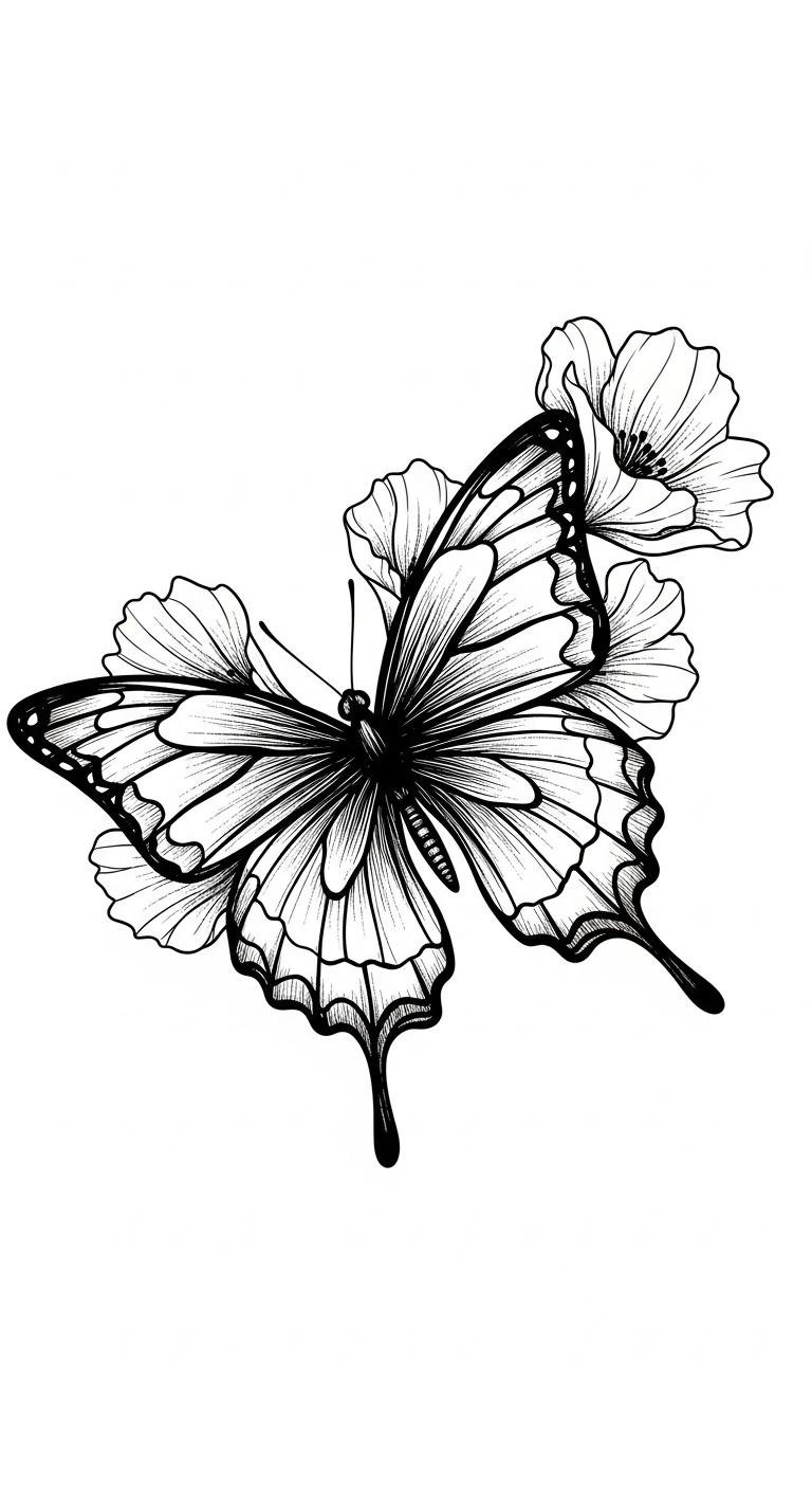 Embodying the essence of contrast, the bold butterfly outline with delicate petals creates a striking visual narrative that captivates the eye.