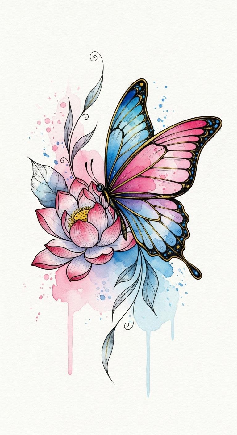 When you envision a watercolor butterfly entwined with a lotus flower, the vibrant hues and fluid brush strokes come alive, creating a breathtaking tapestry of transformation and serenity.