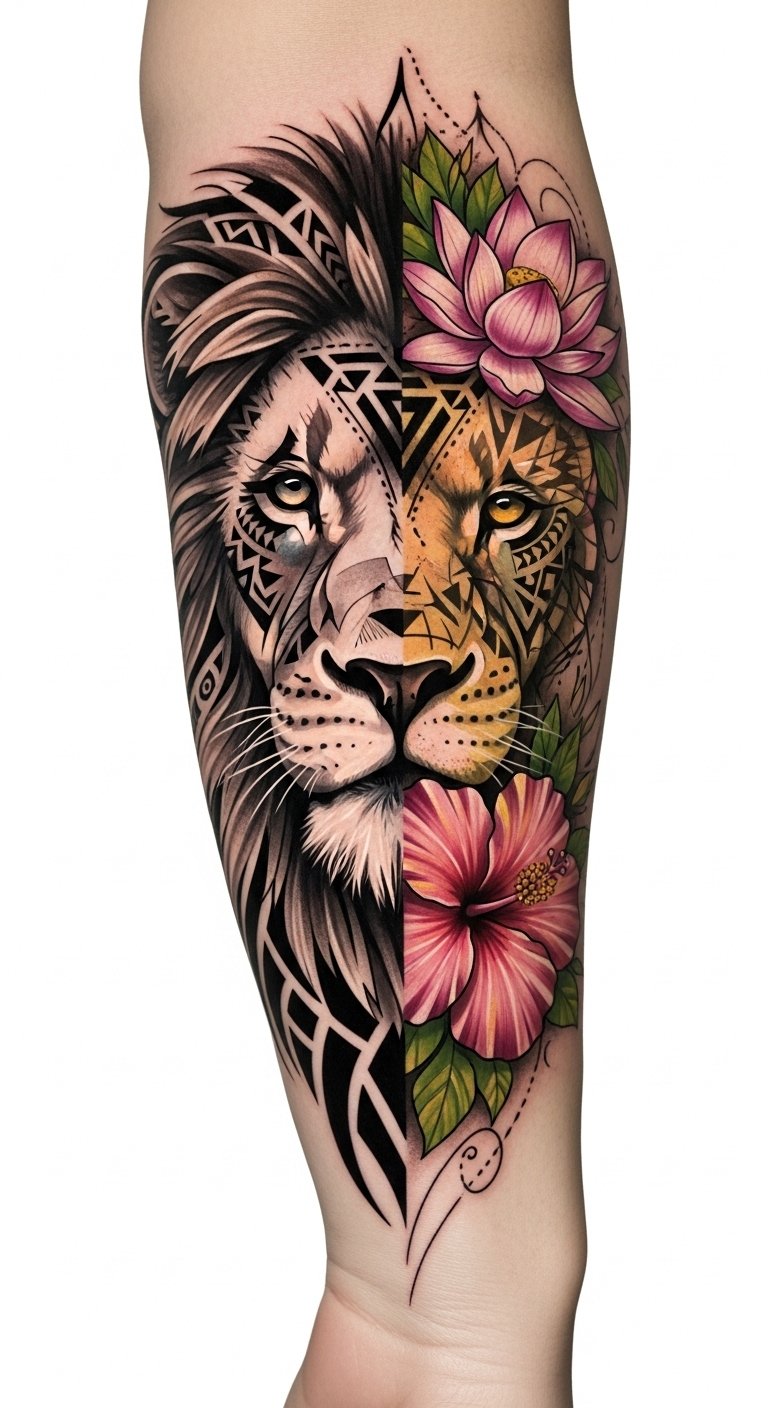 While the fierce spirit of a lion embodies strength, integrating tribal patterns with floral elements creates a stunning visual narrative that speaks to your heritage and individuality.