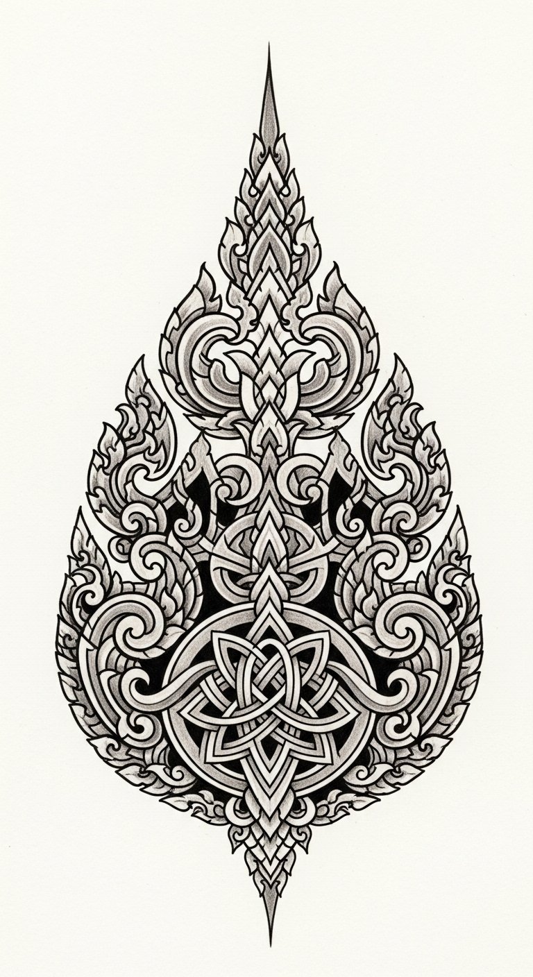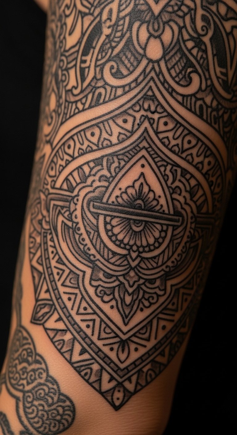 Ideal placements include the sternum, mid-back, or as a full or half sleeve where the radial center aligns with the body’s natural midline, and negative-space elements allow the tattoo to breathe and flow with musculature.