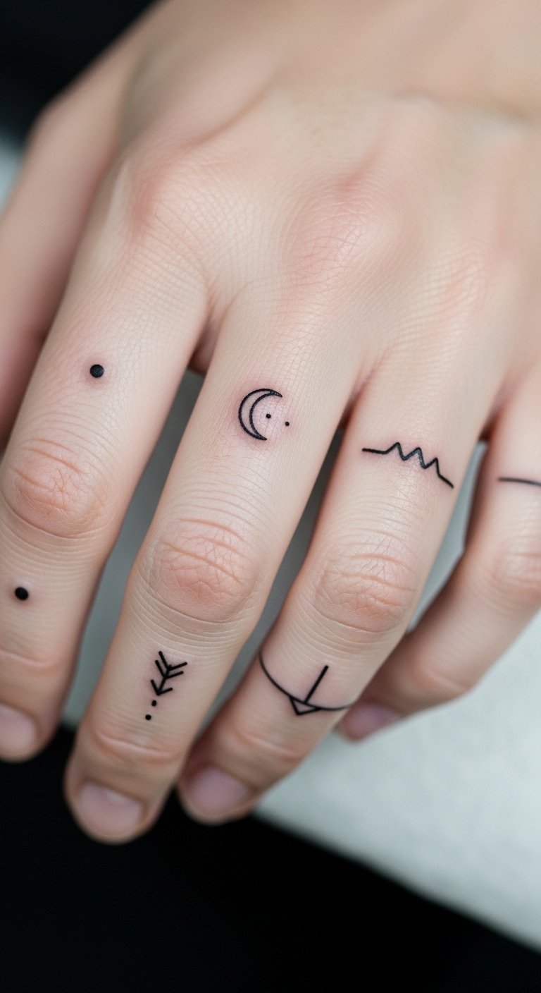 These delicate inkings, often placed on the sides or tops of fingers, showcase minimalist designs that whisper rather than shout. They’re perfect for those seeking freedom in expression without overwhelming detail, allowing your personality to shine through.