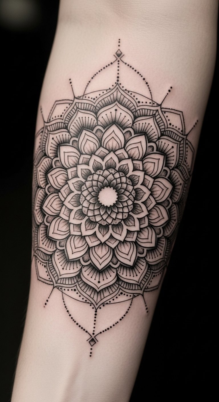 These tattoos embrace mandala symbolism, representing harmony and unity. With their delicate, intricate patterns, they invite contemplation and self-expression, allowing you to wear a piece of art that resonates with your spirit.