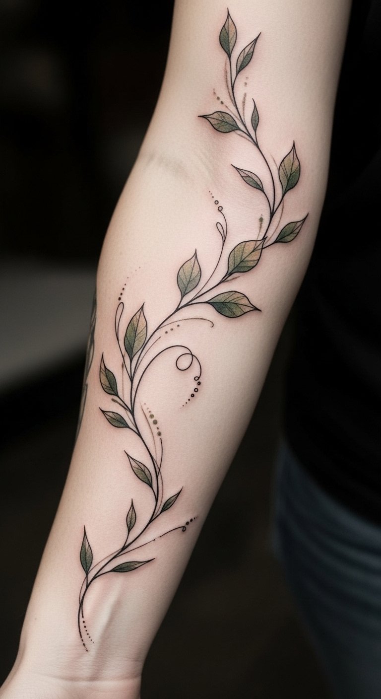 These designs embody freedom, with vine tattoo meanings often symbolizing growth and connection. The delicate intricacies of leaves carry leaf symbolism significance, representing renewal and harmony.