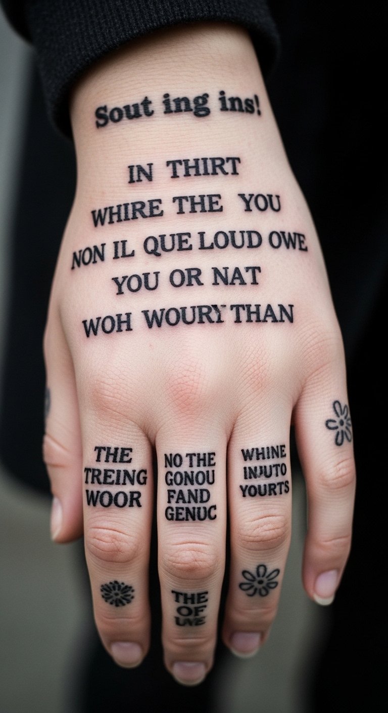 Imagine inked meaningful phrases that resonate with your soul, or personal quotes that inspire freedom and strength. Each curve and line can tell your story, transforming your hand into a representation of resilience, love, and individuality.