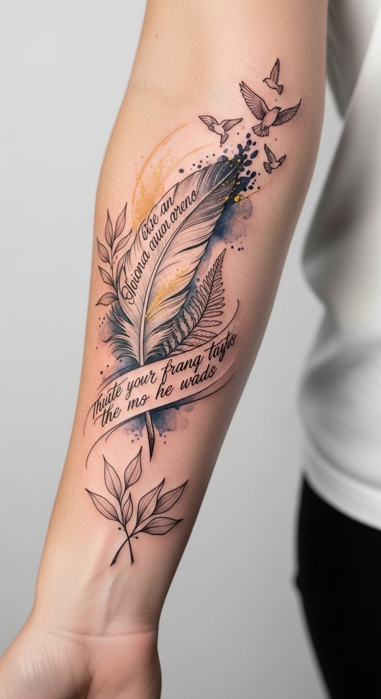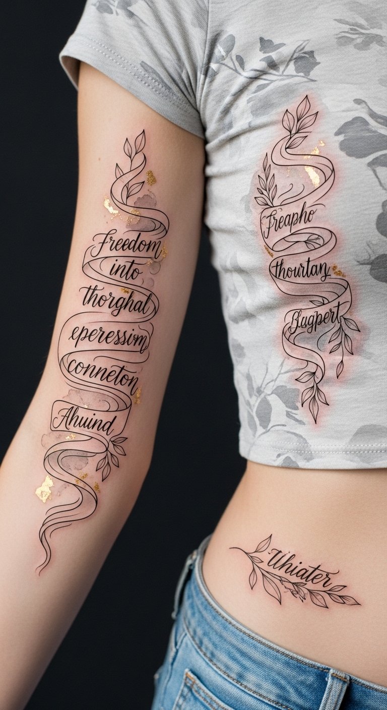 Each line you choose reflects personal expressions of love, strength, or hope. Whether it’s a quote that inspires you or a reminder of a cherished moment, these tattoos are more than ink—they’re a celebration of your journey, a reflection of your soul’s essence, and an artful declaration of freedom.