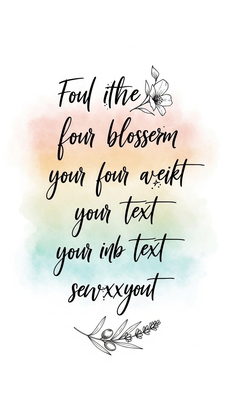 These elegant designs resonate deeply, inviting you to carry your passions and reflections in an art form that speaks to your soul. The script and botanical accents symbolize the living quality of memory and feeling—words as vines that grow and intertwine with personal experience—while the muted watercolor hints at the fragile, transient nature of emotion;