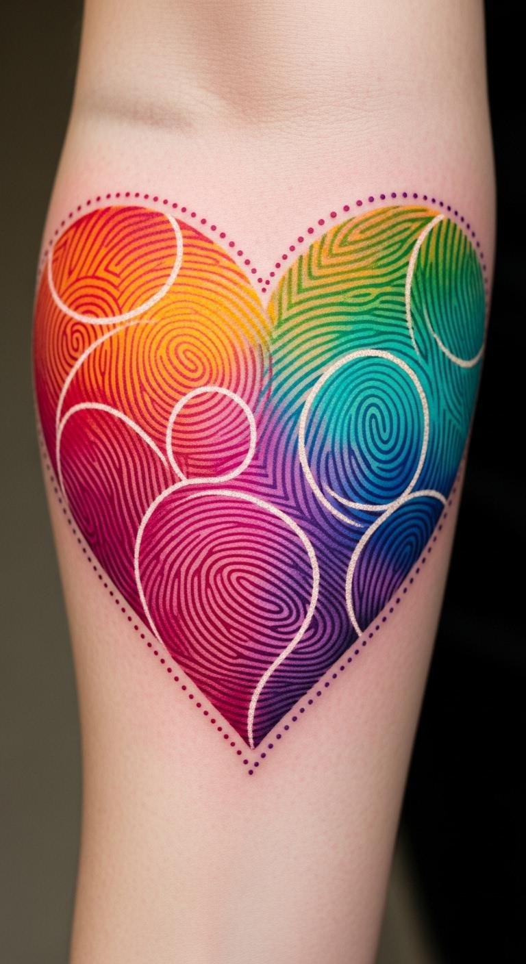 Colorful Heart Fingerprint Tattoo