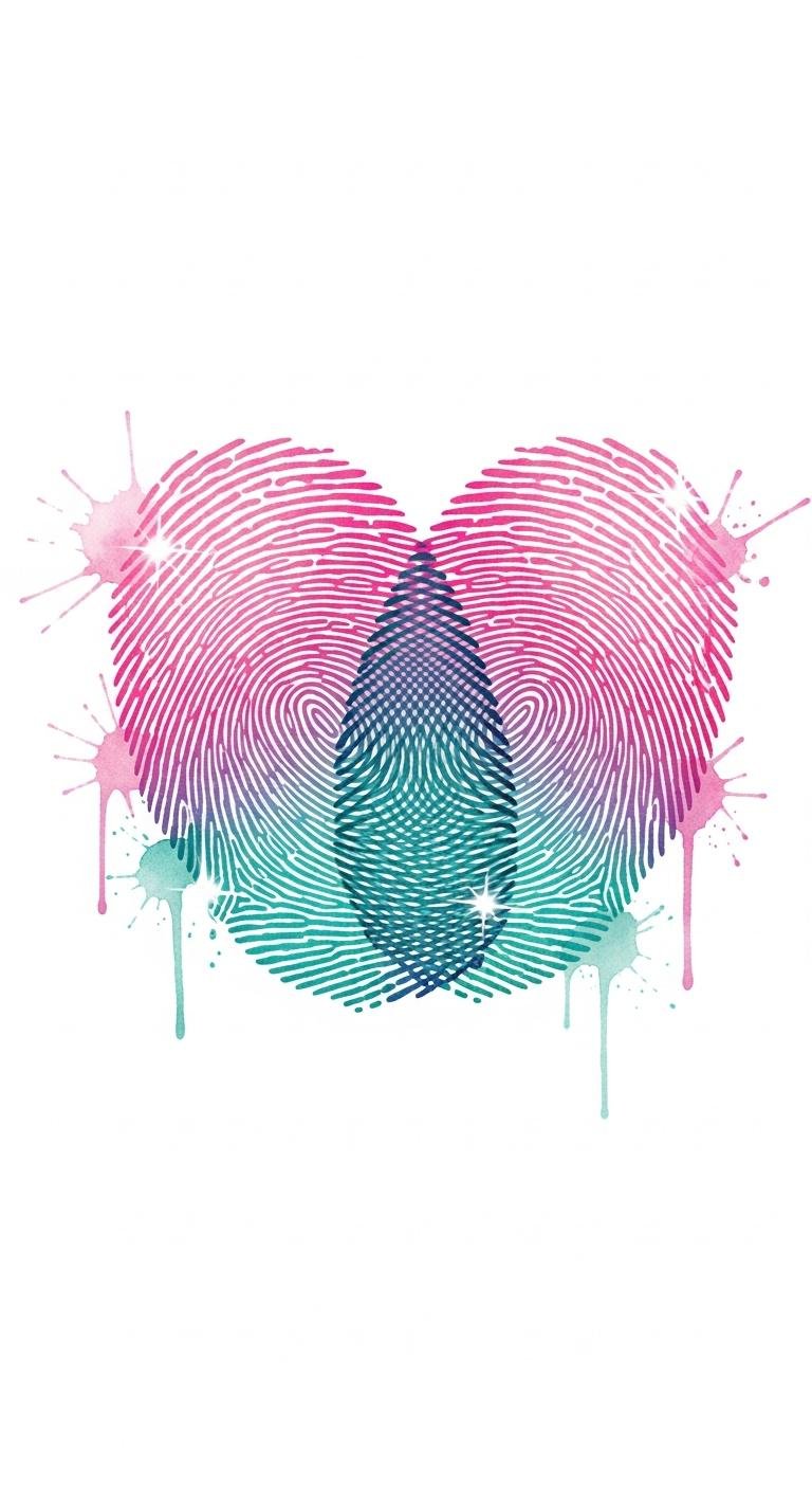 The fingerprint-heart motif symbolizes intimacy and personal history, evoking warmth and remembrance; emotionally it feels like a keepsake and can honor a relationship, family, or self-identity.