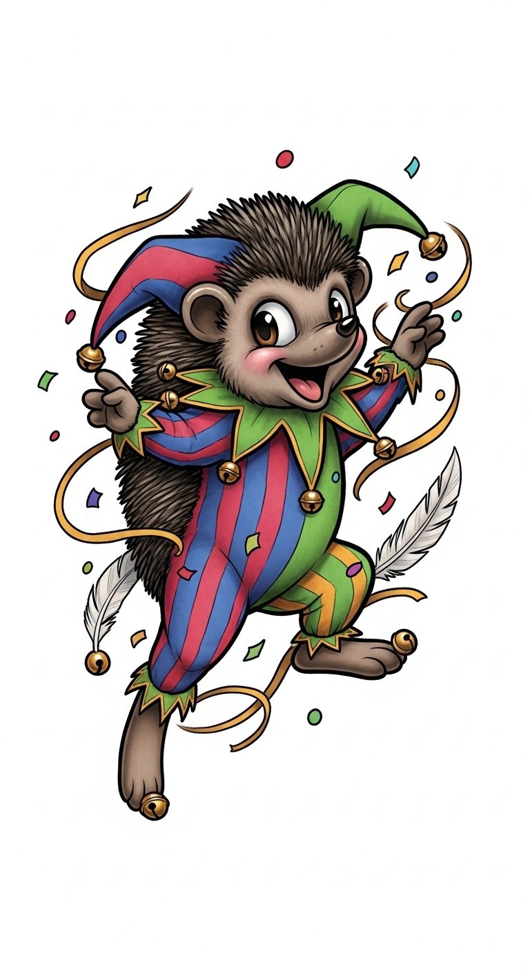 Picture humorous hedgehog expressions and dynamic jester hedgehog poses that bring joy and freedom to your skin. These playful jester designs invite laughter and lightheartedness into your life, celebrating your unique spirit.