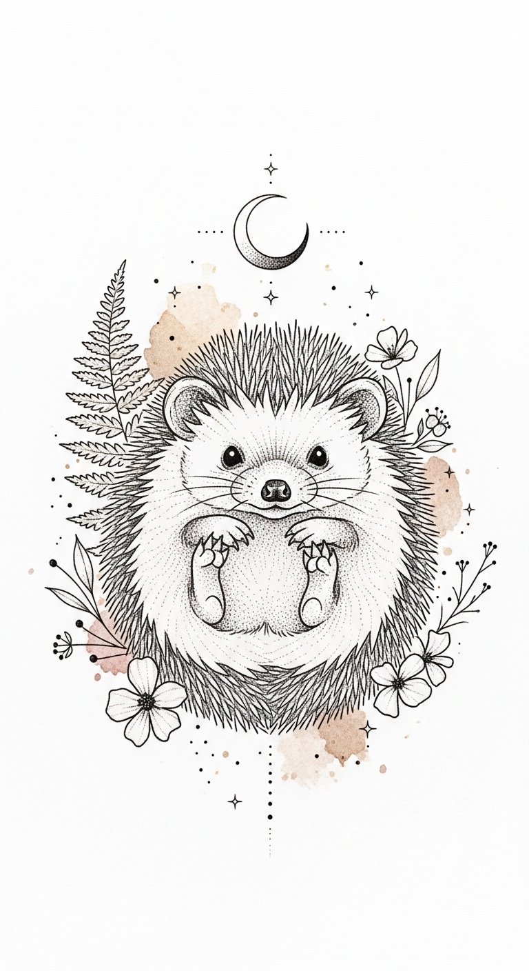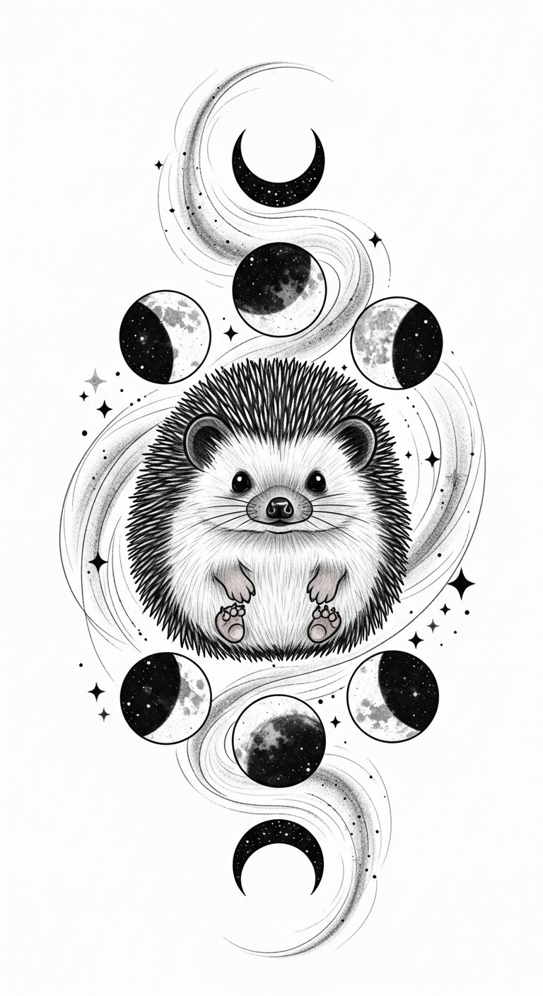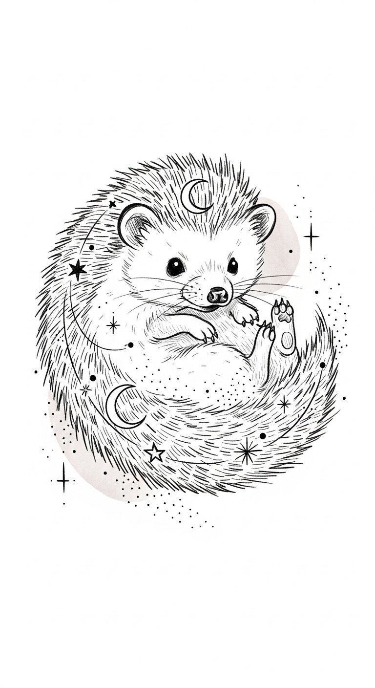 If you’ve ever gazed up at a full moon and felt a sense of wonder, combining that celestial beauty with a charming hedgehog can create a tattoo that’s both enchanting and meaningful. Imagine hedgehog moon phases swirling around your design, each phase symbolizing growth and transformation. Celestial hedgehog designs allow you to express your unique journey while celebrating the magic of the cosmos. This design evokes curiosity, resilience, and the quiet strength of personal cycles; place it on the forearm or along the ribcage to follow the body’s natural curve, or as a small, intimate piece behind the ear or on the ankle for a subtle reminder of growth and connection to the night sky.