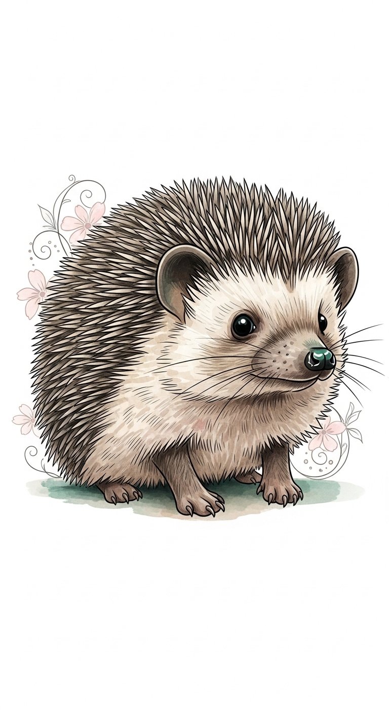 A detailed hedgehog portrait captures the whimsical charm and intricate beauty of these adorable creatures.