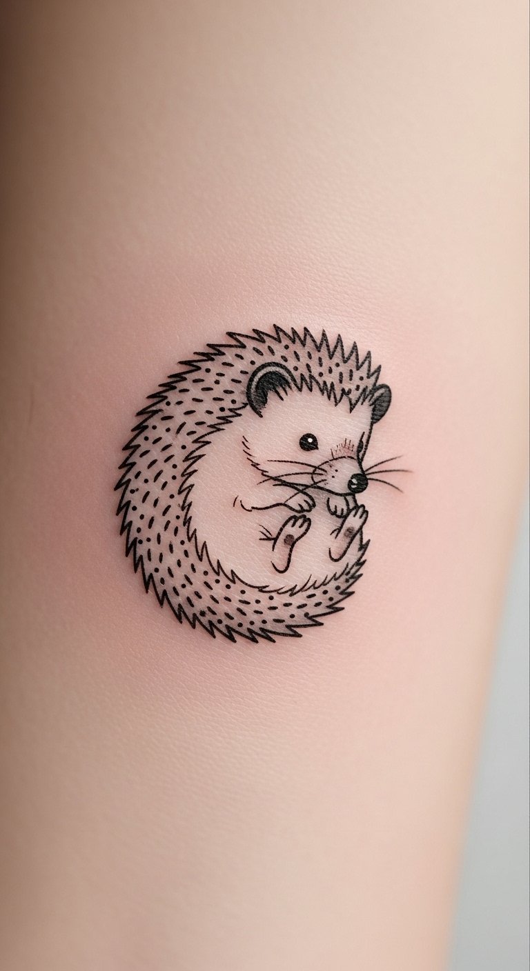 While large hedgehog tattoos make a bold statement, tiny hedgehog designs offer a charming and discreet alternative.