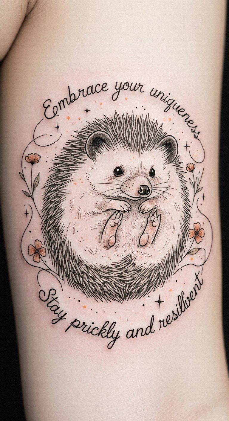 Hedgehog tattoos paired with inspirational quotes create a beautiful fusion of art and meaning, allowing you to carry a powerful message wherever you go.