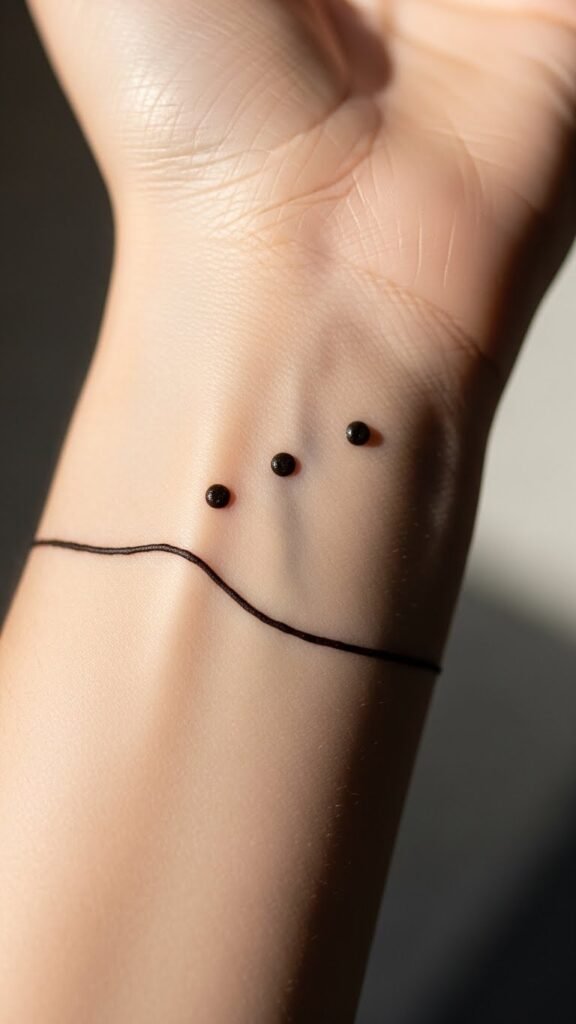 As you explore the world of henna tattoos, you’ll encounter the charm of dotted bracelet designs, which offer a unique and artistic way to adorn your wrists. These designs symbolize connection and balance, with various dotted bracelet variations showcasing intricate patterns. Whether you choose delicate dots or bold clusters, these tattoos provide a stunning expression of your individuality and free spirit. The symbolism centers on unity and equilibrium—each dot representing a moment or relationship woven into a continuous band. Emotionally, the design evokes playfulness and confidence while maintaining a meditative calm through repeating rhythms. Ideal placements include circling the wrist like a bracelet, layered bands up the forearm, or mirrored on both wrists for symmetry; scale and spacing can be adjusted to read as subtle accessory or bold statement, and placement near veins or the inner wrist can emphasize intimacy and personal meaning.