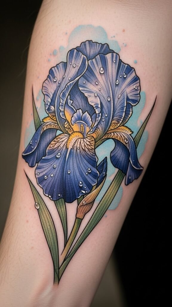 Embodying faith and hope, blue iris tattoos resonate deeply with those who seek to express their inner strength and resilience.