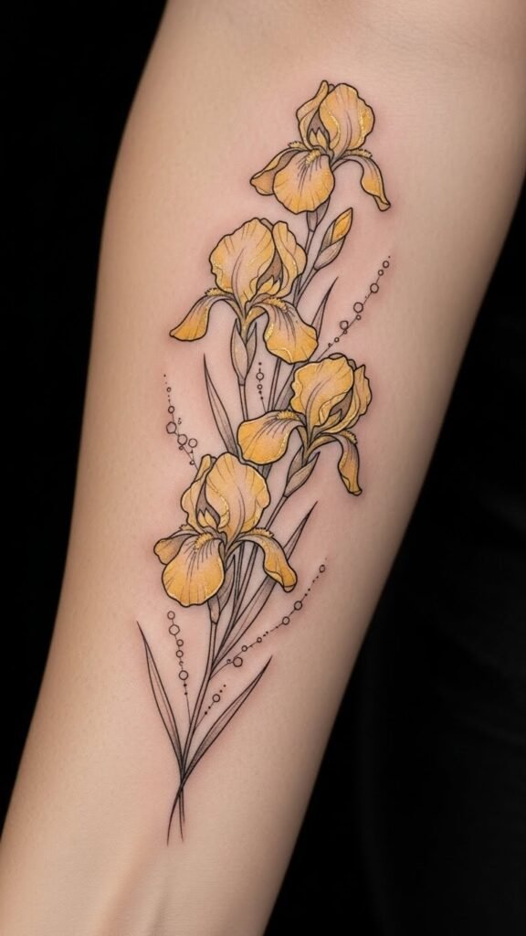 These stunning tattoos capture the essence of friendship symbolism, representing warmth, positivity, and playful bonds. Intricate designs can showcase the delicate petals of the yellow iris, emphasizing your unique friendships.