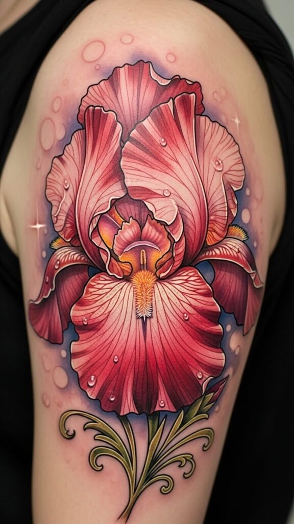If you’re looking to express deep emotions and passionate connections, red and pink iris tattoos offer a stunning canvas for your feelings.