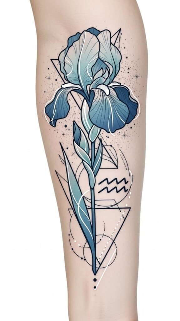 Representing innovation and independence, Aquarius traits perfectly align with iris symbolism, which embodies hope and wisdom. An iris tattoo can reflect your free-spirited nature, reminding you to embrace your uniqueness while celebrating the beauty of life’s unpredictable journey.