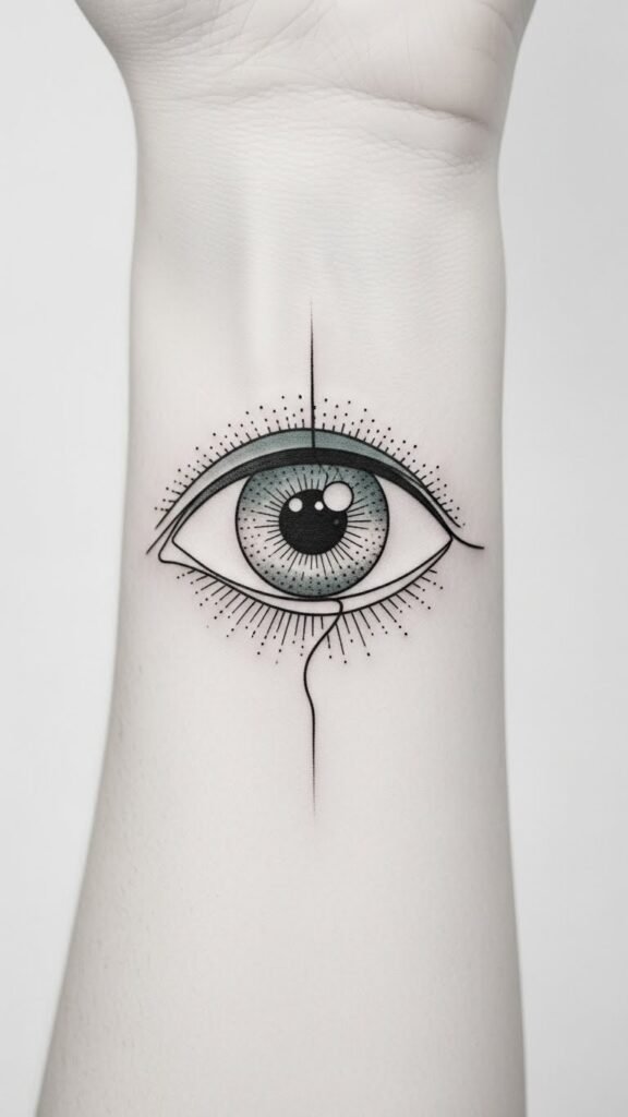 Ideal placement is on the forearm for visibility and movement, the chest near the collarbone for intimacy, or the nape for subtlety; scale and line weight should be adjusted to the location to preserve crisp symmetry and delicate iris detail.