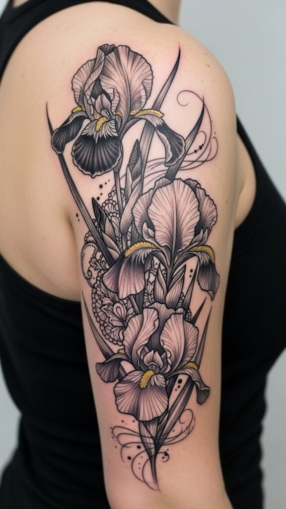 You might consider minimalist linework, capturing the essence of the iris with clean, flowing lines. Subtle shading can enhance depth, allowing the design to breathe.