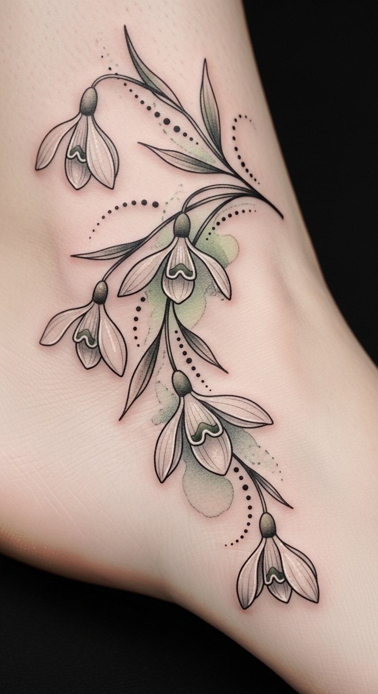 Elegant Ankle Tattoos Featuring Snowdrops