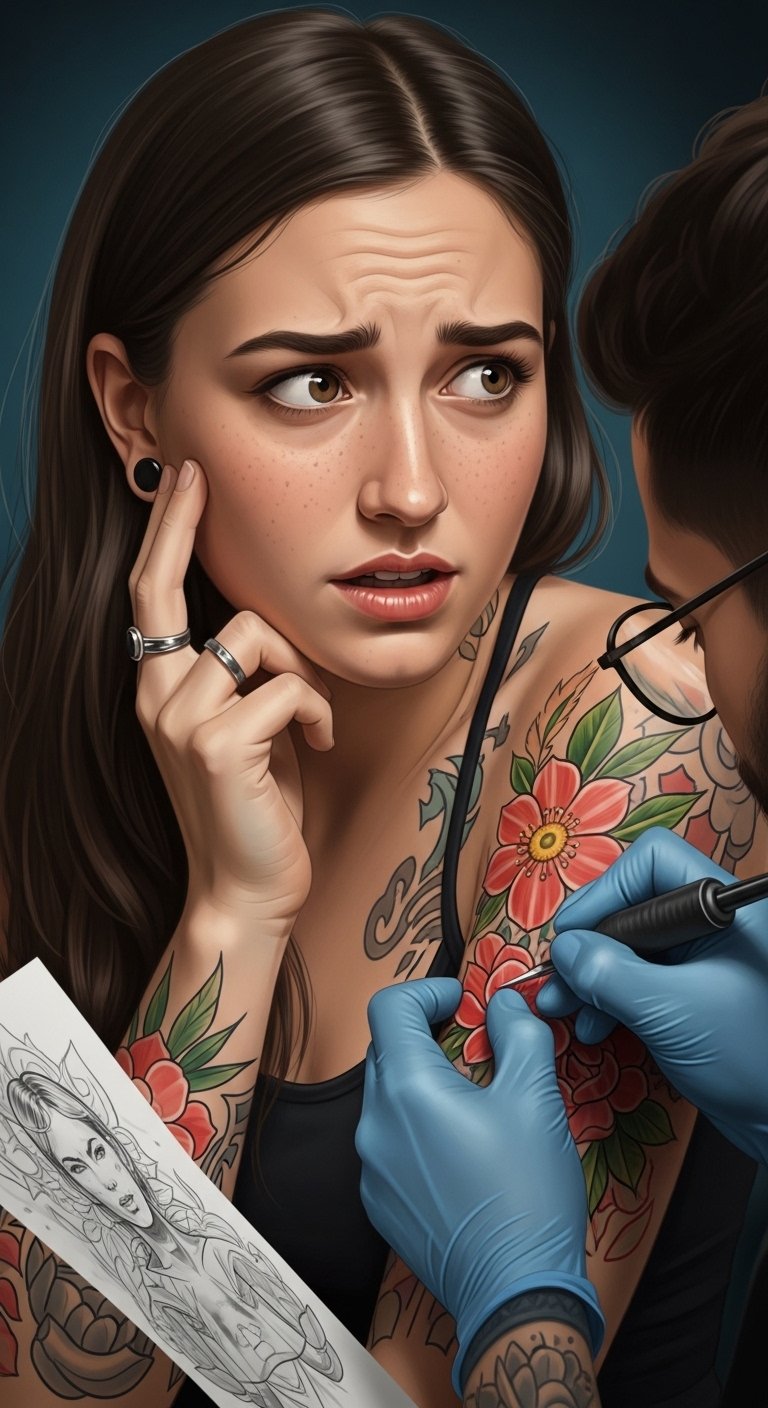 This design concept envisions a blossoming flower tattoo that captures the emotional arc in the text: excitement and nervousness rendered as contrasting line weights and color tones—soft pastels and warm highlights against cool, delicate shading—symbolizing personal growth and transformation. The composition centers on a half-open bloom transitioning into sketched petals that dissolve into fine-line filigree, representing the consultation and design process. Ideal placement is the inner forearm or ribcage, where the unfolding form follows natural contours and reads as an intimate, evolving statement about self-expression.
