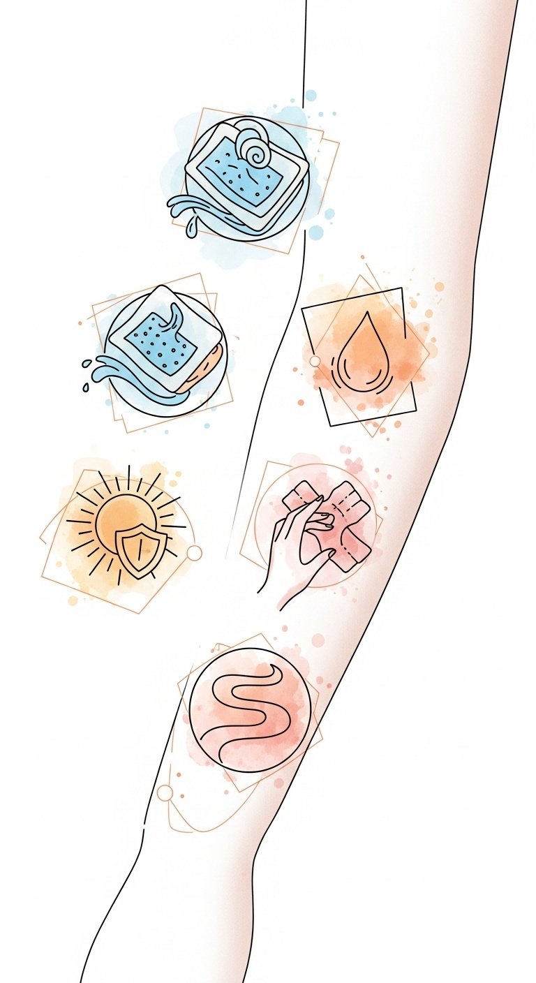 Embrace sun protection for vibrant colors, and manage scabbing with care.